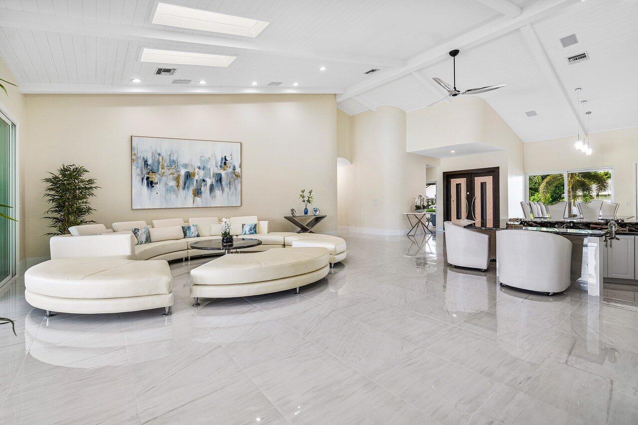 This spacious, contemporary home offers an exceptional living experience! The recent renovation features stunning new white porcelain floors & a chef's kitchen equipped with high-end appliances, including a double fridge, double freezer, two dishwashers, and a GAS stove. The large indoor-outdoor area, complete with a summer kitchen, opens to a private oasis: newly installed: large heated saltwater pool and spa with a sun-shelf, huge patio & even a mini putt--perfect for entertaining! The primary suite boasts his & her bathrooms and a massive walk-in closet. High ceilings throughout, hurricane impact windows with electric shutters, & a whole-house generator ensure full protection. Every detail considered, from the osmosis water system, surround sound inside & out to garage AC! Bocaire